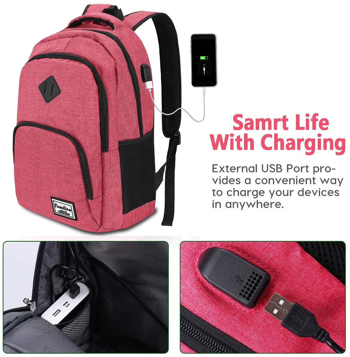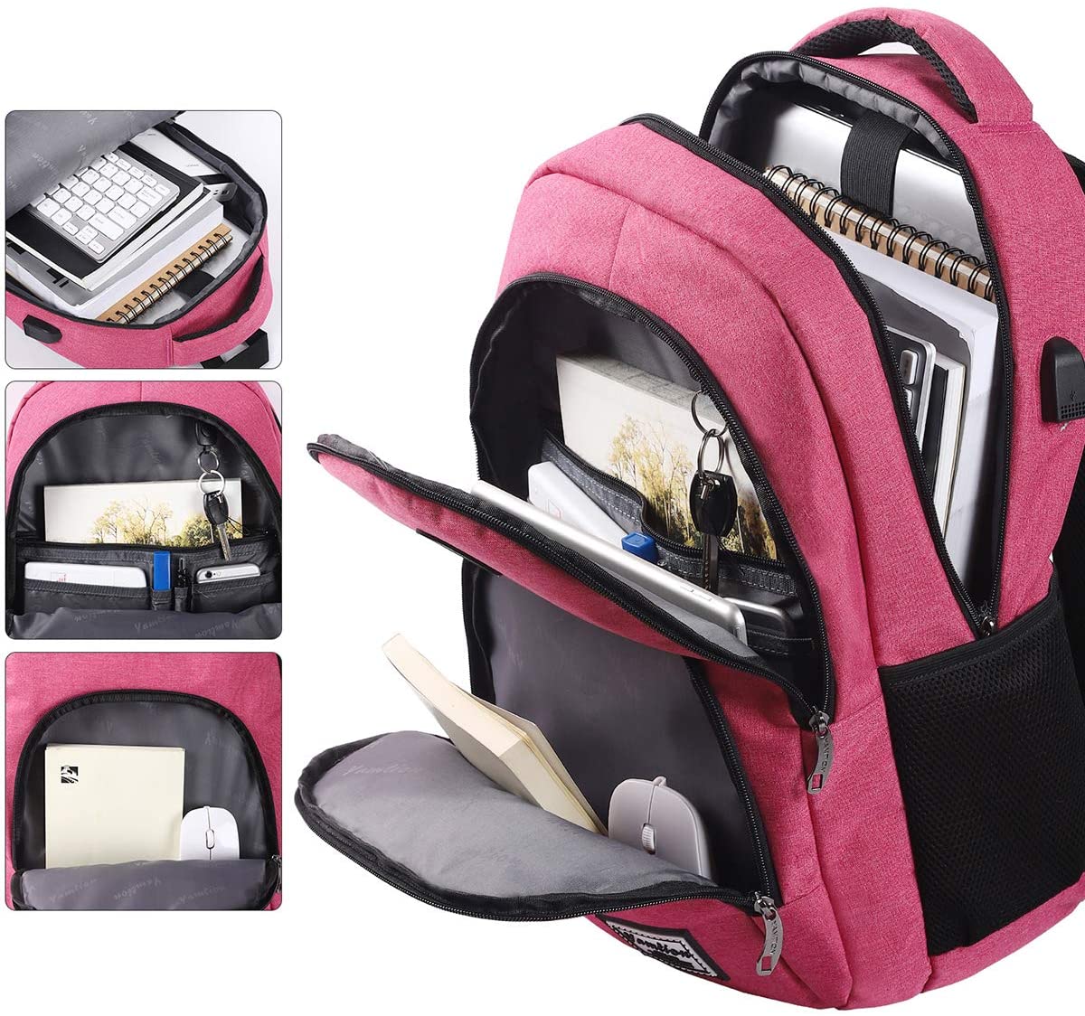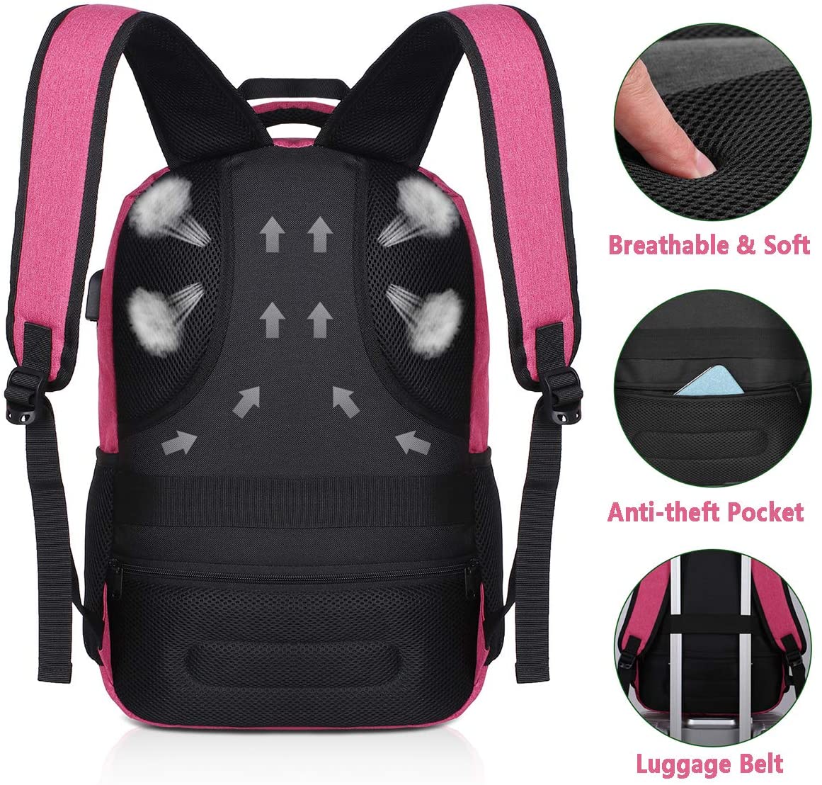 Esta mochila escolar con USB es perfecta tanto para niñas como para mujeres, es ligera y cabe un portátil de hasta 14” (tipo MacBook Pro).